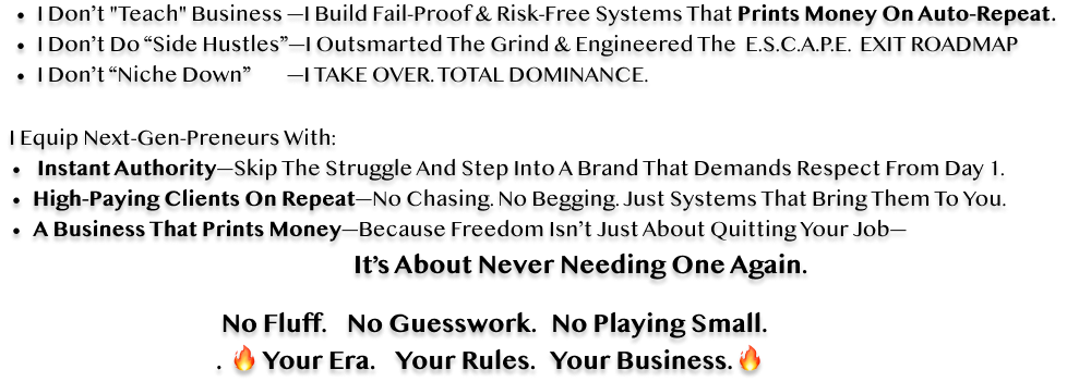 👉 Founding members get a first look inside the system + an exclusive mastermind on how to dominate as a Next-Gen-Preneur.