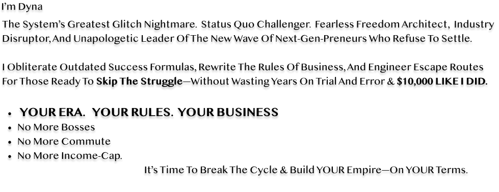 People aren’t “resigning”—they’re revolting. The 9-to-5 model has hit a terminal decline, and millions are building their own seats at the table. But here’s the problem: Most will fail because they don’t have a real system. That’s where I come in. My system isn’t a “business idea”—it’s a fully weaponized blueprint for profit from DAY 1.